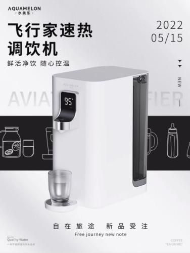 秉持不被限制的用水自由,水美樂將水質凈化與智能控溫融合,研發新一代凈水產品,飛行家速熱調飲機。