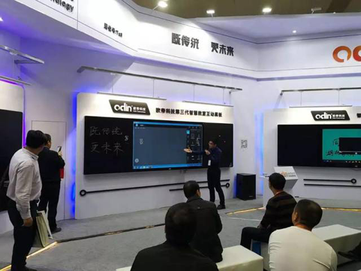 會展上,歐帝科技第三代智慧教室互動黑板引發不少人觀看體驗,智慧教室互動黑板不但呈現的課件內容清晰,也讓教學互動更加有趣。簡單快捷的人機交互、方便有效的應用教學、種類豐富的授課功能,無一不吸引著人們的眼球,令人駐足體驗。