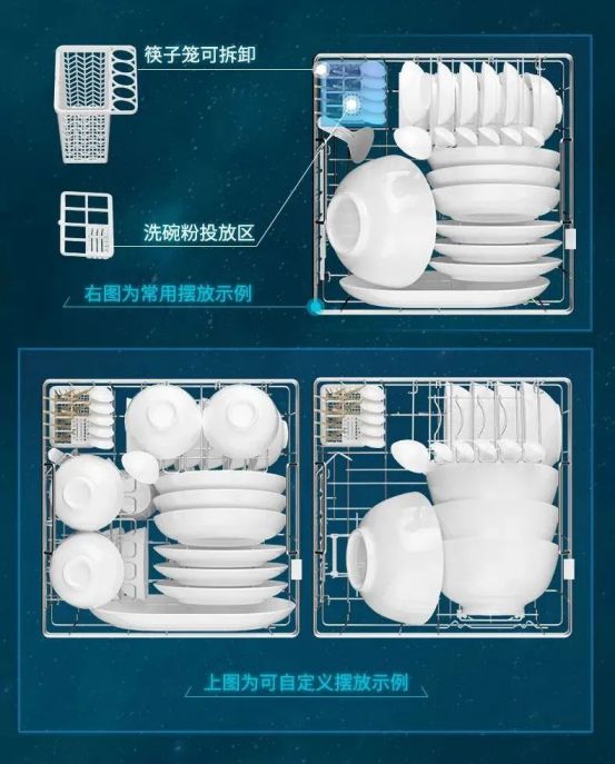 新一代升級碗籃,專為中國家庭設計,可移動可調節,充分滿足中式餐具擺放需求。