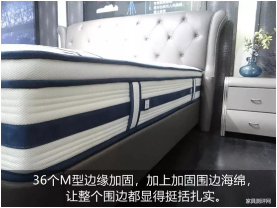 驚喜還沒完——雙重邊沿加固。做邊沿加固的不少,但“水晶之夢”還是超出了我的預期。36個M型邊緣加固,加上加固圍邊海綿。讓整個圍邊都顯得挺括扎實。從床墊的中部靠坐,一路挪到邊沿處,明顯看到臀部下陷的幅度幾乎無變化。直接坐在床邊,視覺上略有下陷,但身體幾乎沒有下滑感。能將床墊這種軟體家具的邊沿,做到這種程度的定型,可見工藝和用料都是花了大心思了。