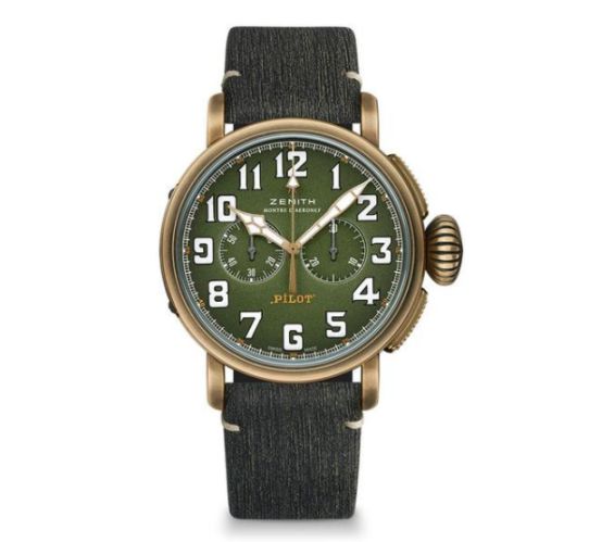 搭載品牌知名的El Primero導(dǎo)柱輪計時碼表機(jī)芯,Zenith全新Pilot Type 20 Chronograph Adventure腕表,再度將來自航空儀器的靈感,延伸到設(shè)計當(dāng)中。此枚腕表充滿濃濃的軍事風(fēng)格,不僅以粒面卡其綠打造表盤,表殼特別選以青銅材質(zhì)制成,讓整體充滿濃濃復(fù)古基調(diào)。而鈦金屬表背更鐫刻上Zenith飛行儀器標(biāo)志,呼應(yīng)腕表與品牌的核心精神,并備有迷彩鱷魚皮表帶與卡其色小牛皮表帶可供替換。