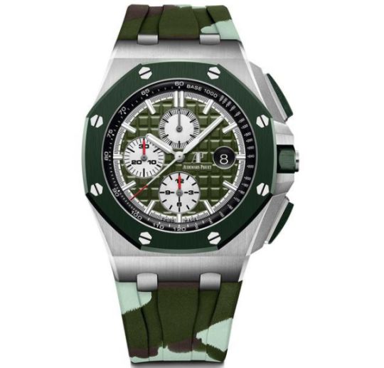 皇家橡樹離岸型系列腕表延續(xù)皇家橡樹系列的經(jīng)典元素——八角形表圈與「Tapisserie」格紋裝飾表盤,并透過加大表徑尺寸、導(dǎo)入橡膠材質(zhì)以及防水性能,都讓這款腕表一推出,便躍升成為奢華運(yùn)動表款的新星。今年,Audemars Piguet也推出全新皇家橡樹離岸型系列自動上鏈計時碼表,除了表面鐫刻「Méga Tapisserie」超大型格紋裝飾圖案之外,更特別以彩色陶瓷打造表圈、按鈕與旋入式表冠,并搭配上同色系迷彩橡膠表帶,再次帶來讓人耳目一新的精彩表款。