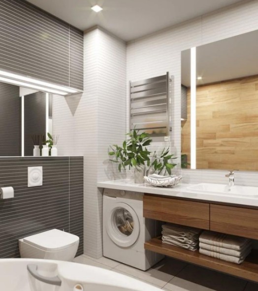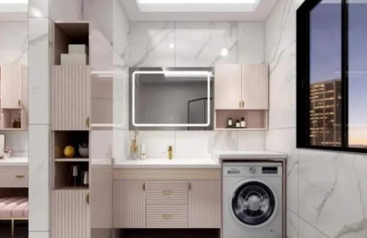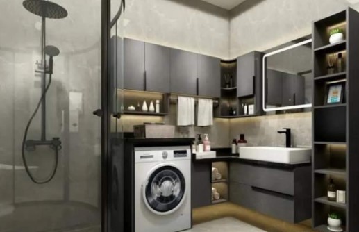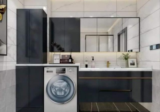 將浴室儲物柜與洗衣機結合使用,也是一個不錯的選擇。根據(jù)需要來設計儲物柜。首先計算好儲物柜的尺寸,然后放入洗衣機,既美觀又易于清潔。