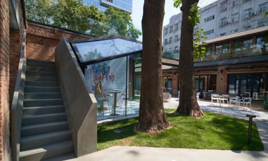 由ESA建筑事務所設計改造的JING YARD通過平面幾何的嵌套,借鑒中國傳統私家園林,將水泥材質與院落文化融為一體,幾何感更強、更直接。在鬧市中打造一處古靜清幽,雅致而清新的理想院落空間。