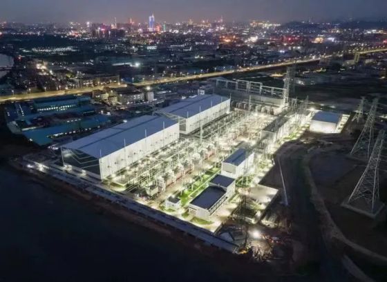 ▲夜色中的粵港澳大灣區直流背靠背電網東莞工程。(圖片來源于“廣東電網”公眾號)