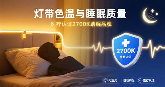 未來,隨著AIoT技術的滲透,助眠燈帶正從“被動發光”進化為“主動守護”。新一代產品已集成毫米波雷達,可無接觸監測呼吸頻率與翻身次數,自動調節亮度與色溫;部分高端型號甚至能聯動智能床墊,根據睡眠階段推送不同波長的光波,實現“光療級深度修復”。可以預見,當“光環境健康管理”成為智能家居標配,2700K將不僅是色溫數值,更是現代人對抗內卷、奪回睡眠主權的溫柔武器。