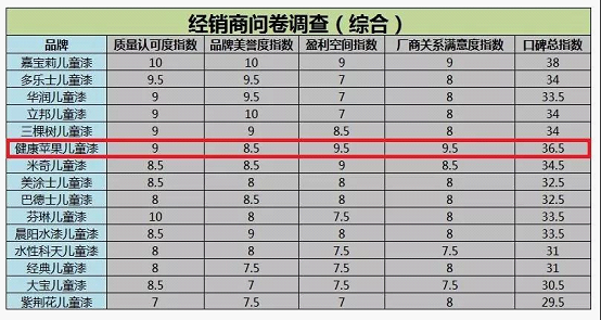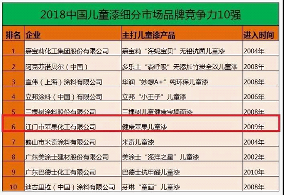 2018中國(guó)兒童油漆榜出爐, 健康蘋果兒童漆始終是排頭兵