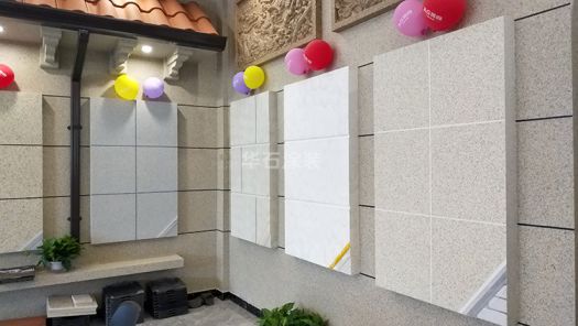 婺城旗艦店店內分為二層,一層為產品體驗區,二層為會客洽談區,在產品體驗區綜合了仿石涂裝的不同材料、工藝、風格做出來的仿石效果,仿石涂裝施工工藝、馬賽克/瓷磚翻新施工工藝、外墻涂裝解決方案也一應俱全,值得每一位來賓細細品鑒。