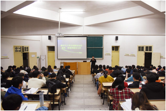講座上,陳杰董事長向同學們介紹了“創新創業”的概念,并從國家需要、社會需要、個體需要三個方面說明了為什么要創新創業。陳董指出目前創新創業的現狀,并分享了對教育存在誤區、教育師資隊伍不完善、創新創業教育課程體系不健全等問題的看法。