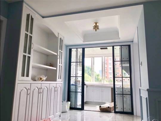 這個美式裝修風格沉穩大方,墻面涂料顏色調的是淺淺的藍灰色,看起來低調又輕奢,還有石膏線的加持,帶給你優雅精致的感覺,這樣的美式裝修風格很耐看,也彰顯了業主的品味。