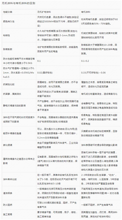 下表是鉑英特小編為大家整理的無機(jī)涂料與傳統(tǒng)有機(jī)涂料相關(guān)性能的詳細(xì)對比,有興趣的小伙伴可以點(diǎn)開大圖詳細(xì)了解一下。