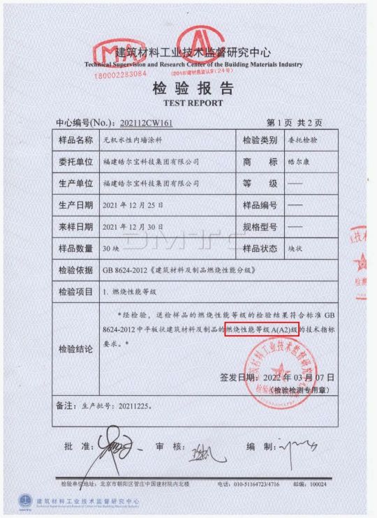 無機涂料取材于天然礦物質,在高溫高壓下研磨制成,在1200℃的高溫下不會起皮融化燃燒,并有阻燃效果,即使身處火災險境下,也不會釋放有毒有害氣體,大大提高了安全系數。