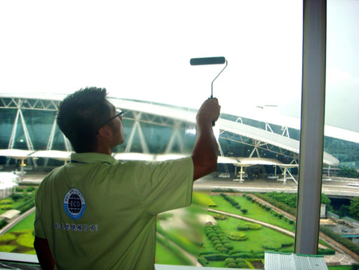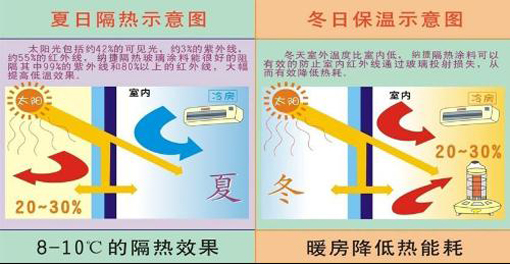 玻璃隔熱涂料是采用多種金屬納米粉體材料加工制備的一種涂料,其中所采用的納米材料本身具有特殊的光學性能,即在紅外光區(qū)、紫外光區(qū)有很高的阻隔率,在可見光區(qū)有很高的透過率。利用該材料的透明隔熱特性,與環(huán)保型高性能樹脂混合,經(jīng)過特殊的加工工藝處理,制備出節(jié)能環(huán)保的隔熱保溫涂料。在不影響玻璃采光的前提下,夏季達到節(jié)能降溫效果,冬季達到節(jié)能保溫效果。