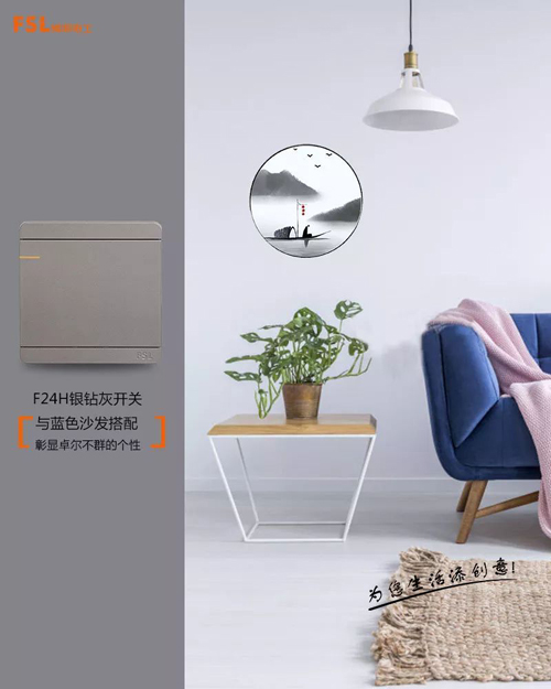 今天帶著這份優(yōu)雅而沉穩(wěn)的舒適感,佛照電工為您揭開F24銀鉆灰開關(guān)插座的真面目,一同見證F24銀鉆灰與其他色系搭配產(chǎn)生的不同藝術(shù)效果。