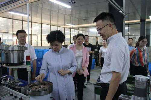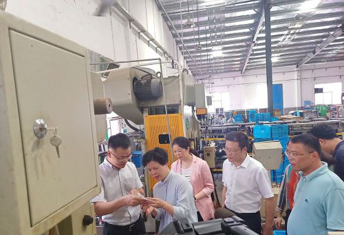 隨后,深思電工劉小勇董事長陪同領導參觀湘鄉(xiāng)工業(yè)園區(qū),首次來到五金沖壓車間和五金組件車間。劉小勇董事長詳細介紹了深思產(chǎn)品的沖壓工藝及材料,并解釋了深思五金組件的成就:五金組件已經(jīng)從手工組裝轉變?yōu)槿詣釉O備組裝,實現(xiàn)了智能化制造!