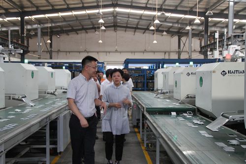接下來,湘潭市市長張迎春參觀了注塑車間,注塑車間采用機械手代替人工,實施人機分離工程,不僅延長了產(chǎn)品的冷卻周期,鞏固了產(chǎn)品結構的質量,而且將產(chǎn)品與噴嘴分離,降低了人工成本。