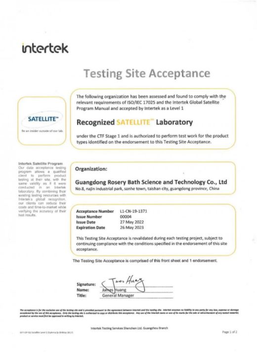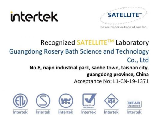 玫瑰島自2017年首次通過Intertek“衛(wèi)星計(jì)劃”實(shí)驗(yàn)室審核,至今已連續(xù)6年獲此資質(zhì)。獲得認(rèn)證的衛(wèi)星實(shí)驗(yàn)室的檢驗(yàn)?zāi)芰Ω采w了淋浴房的密水性能、耐久性能、穩(wěn)定性能等關(guān)鍵技術(shù)指標(biāo),實(shí)驗(yàn)室出具的檢測報(bào)告符合歐洲標(biāo)準(zhǔn)EN14428,可以作為產(chǎn)品檢測資質(zhì),用于國際出口憑證。