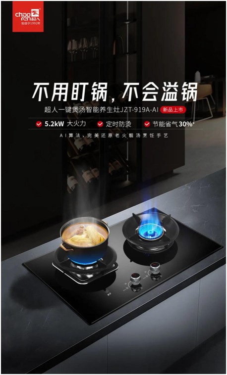 2、作為國家“健康燃氣灶”起草單位,我們今年加大了智能燃氣灶的研發力度。當大家還在把定時、防燙當作智能灶去銷售時,我們已經開發出了第一款真正意義的智能灶:超人智能養生灶。這款灶的最大亮點就在于,它能通過AI算法,還原粵菜大師老火靚湯全程控火技術,實現全程無需盯鍋、不會溢鍋,一鍵煲出鮮美可口的養生湯。
