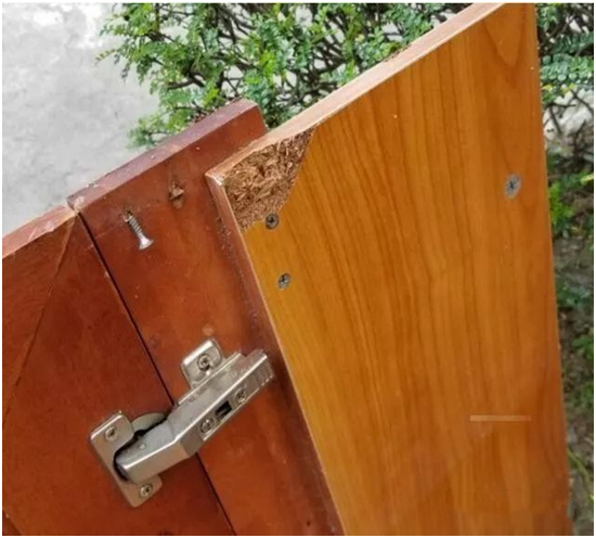 打開(kāi)櫥柜門(mén)后,金玉其外敗絮其中的品質(zhì)馬上暴露出來(lái)了!這就是客戶(hù)毫不猶疑換廚柜的終極原因。