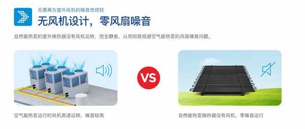 室外換熱器無風(fēng)扇電機運行,徹底解決傳統(tǒng)空氣源風(fēng)機噪音問題,運行節(jié)能、穩(wěn)定,給您安靜適宜的生活溫度。