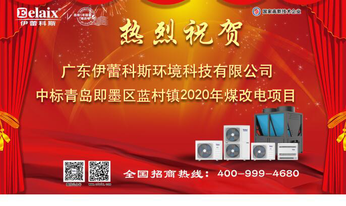 伊蕾科斯空氣能中標青島即墨區(qū)藍村鎮(zhèn)2020年煤改電項目