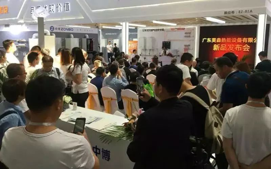 5月7日,2019年ISH北京中國供熱展第二天,廣東昊森熱能設備有限公司在博諾安展位E2-01A舉辦了盛大的新品發布會。博諾安150KW大功率壁掛爐式燃氣熱水采暖爐驚艷首發,功率屬國內目前最大。