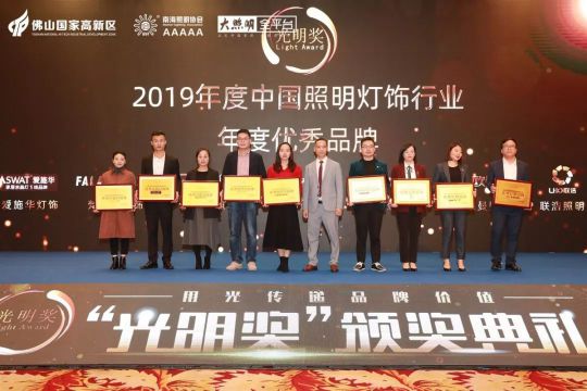 12月19日,由中國照明電器協會擔任指導單位,大照明全平臺、中國(五金)交電渠道聯盟聯合主辦的“光明獎”2019中國照明燈飾行業年度評選,終于迎來榮耀揭榜時刻!愛施華旗下經典歐式水晶燈品牌“ASWAT愛施華”和現代輕奢水晶燈品牌“DORMU迪慕”齊得2019年度中國燈飾照明行業“年度優秀品牌”榮譽。