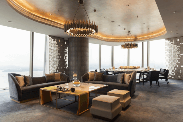 位于70樓的云璟餐廳獨具匠心的就餐環(huán)境,極富創(chuàng)意的“云紋”適時出現(xiàn),行走其中如同在云端漫步,無形中引人浮想聯(lián)翩。