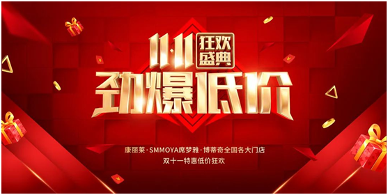 活動期間,康麗萊·SMMOYA席夢雅·博蒂奇全國各大門店套床雙11盛會勁爆來襲!!!搶到就是賺到!!
