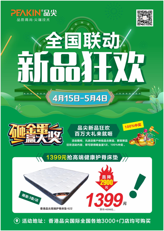 值此五一勞動(dòng)節(jié)來臨之際,為答謝各位經(jīng)銷商以及消費(fèi)者長期以來對(duì)品尖品牌的支持與厚愛,品尖于2022年4月15日—2022年5月4日推出全國聯(lián)動(dòng)·新品狂歡,與廣大新老客戶共慶五一佳節(jié)。