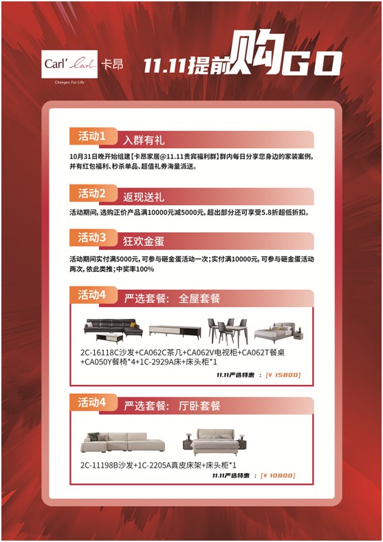 10月31日晚開始組建【卡昂家居@11.11貴賓福利群】群內每日分享您身邊的家裝案例,并有紅包福利、秒殺單品、超值禮券海量派送。