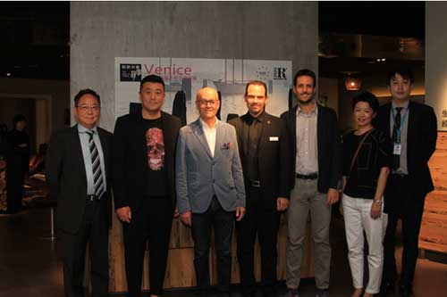 (從左至右:杜博士、歐羅匯世家總裁陳曉太、意大利設(shè)計師 Giuliano Cappelletti、Riva 1920全球營銷總監(jiān)Simone Bellotti、設(shè)計師Giuliano Cappelletti的兒子、歐羅匯世家營銷總監(jiān)張奈麗、居然之家家之尊進口館經(jīng)理蓋廣在活動現(xiàn)場合影留念)