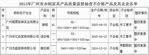 另外,廣州愛霖家具實業有限公司生產的一款推柜、廣州市億尚家具有限公司生產的一款活動柜木工要求不合格。