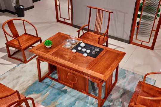 茶臺整體不采用一釘子一鐵,純榫卯的設計,使得茶臺在實際使用中堅固無比。同時更好地保護紅木的木質結構。
