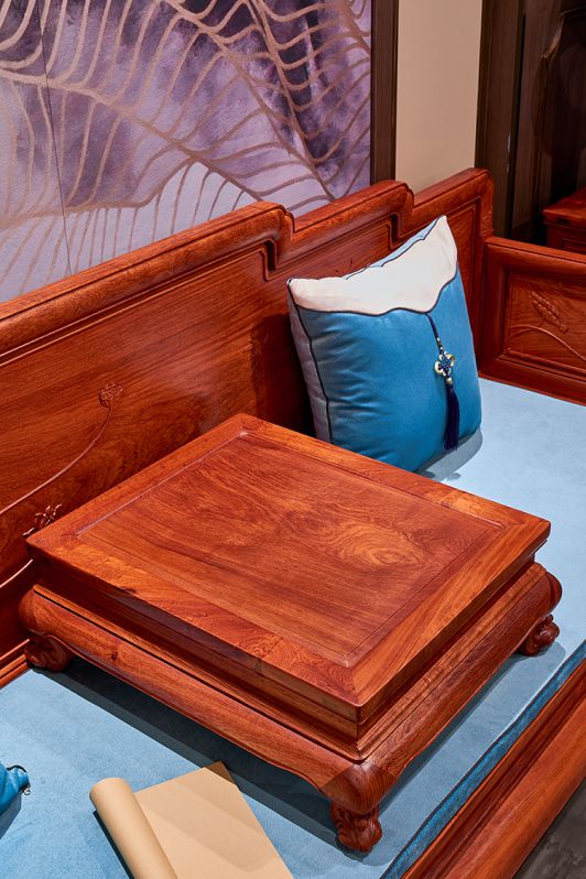 新古典風(fēng)格的荷花寶座,以精選的進(jìn)口大果紫檀材質(zhì)為原料,用料厚實,整體造型頗有婉約之美,泛著荷花獨特的清雅之氣,精巧玲瓏,但用料厚實,大果紫檀的色澤十分明艷,充分展示出大家風(fēng)范,令人著迷,百看不厭。