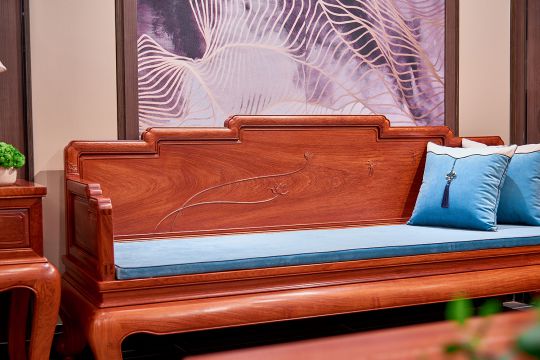 在沙發(fā)的整體雕紋上融入中國畫獨有的留白技法,空靈雋永,意境深遠(yuǎn),將這樣的技法運用于紅木家具上更能展露出其別具一格的風(fēng)雅。