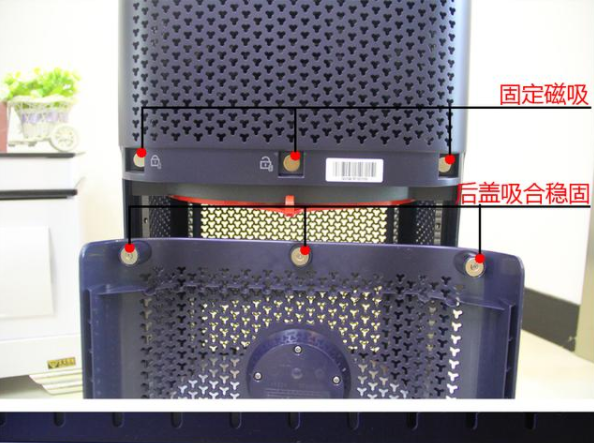 霍尼韋爾的小設計也是非常貼心和感人的。機器后蓋采用“磁石吸附”的設計,濾網鎖緊把手就位后,后蓋底部卡入小孔,輕輕往上一合,六塊磁石自然牢牢吸附,后蓋的安裝就完成了。非常省力。非常人性化的警告提示,防止在機器使用前誤操作。我剛拿到機器時根據常識去除了濾芯的保護膜,然后翻來覆去的找電源線接口,很巧妙的隱藏在黃色警示標貼后面。AT--X3還采用了腳輪鎖止設計,腳輪鎖打開時,可以直線方向很輕松地移動空氣凈化器,更換擺放位置;腳輪鎖就像汽車的手剎,鎖住時能防止工作期間滑動,也可避免孩子誤撞到空氣凈化器導致機器滑行。