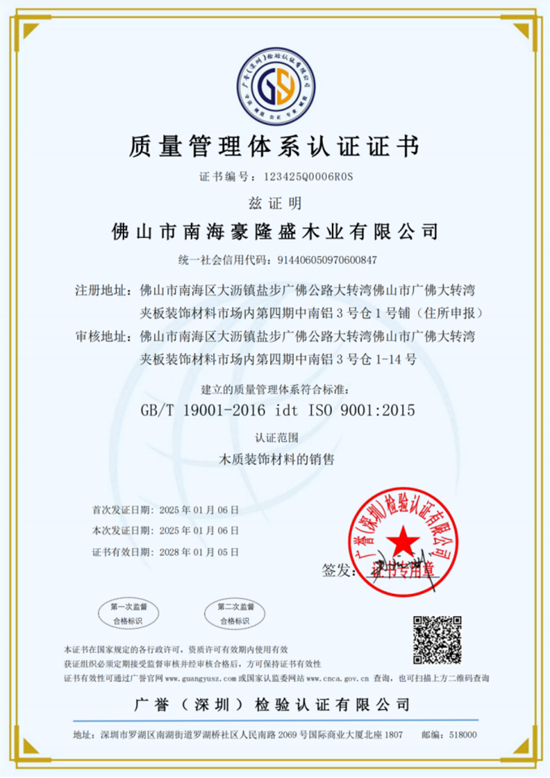 ISO9001質(zhì)量管理體系認(rèn)證的通過,意味著板芝福在質(zhì)量管理上達(dá)到了國際標(biāo)準(zhǔn)。這不僅是對企業(yè)過往努力的肯定,更將助力板芝福在未來持續(xù)提供高品質(zhì)的產(chǎn)品和服務(wù),在競爭激烈的板材市場中更具優(yōu)勢,繼續(xù)向著成為中國最具價(jià)值板材品牌的目標(biāo)穩(wěn)步前行。