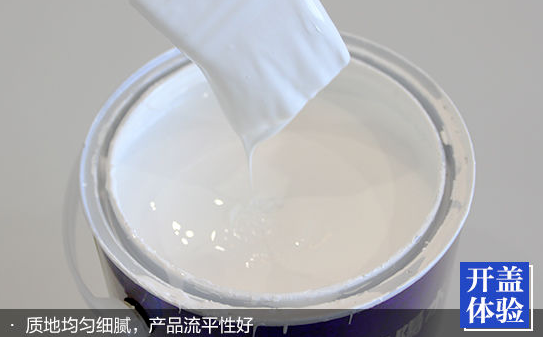 打開(kāi)涂料罐蓋,可以看到里面的液體呈現(xiàn)均勻細(xì)膩的乳白色,沒(méi)有泛黃、異物或漂浮和分層。整罐涂料呈現(xiàn)無(wú)味狀態(tài),既無(wú)刺激性甲醛氣味,也無(wú)明顯的人工香味。用刷子攪拌提升后,可以看到水性漆不斷均勻下落,液體稠度適中,不結(jié)塊不沉淀,質(zhì)地光滑順滑,手感光滑。