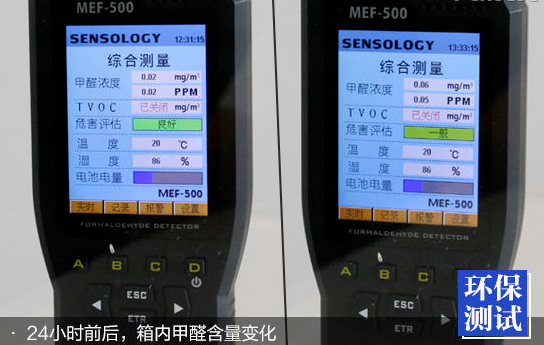 甲醛測(cè)試儀和涂有晨陽(yáng)水漆的玻璃板放入密封箱中,每24小時(shí)檢測(cè)一次箱內(nèi)甲醛含量。可以看出,初始狀態(tài)下空氣中的甲醛含量為0.02毫克/立方米。玻璃板放入箱內(nèi)24小時(shí)后,箱內(nèi)甲醛含量為0.06毫克/立方米,整體甲醛值增加0.04,仍低于0.08毫克/立方米的國(guó)家標(biāo)準(zhǔn),甲醛釋放量少,環(huán)保指標(biāo)優(yōu)異。