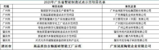 日前,廣東省工業(yè)和信息化廳發(fā)布:2020年廣東省智能制造試點(diǎn)示范項(xiàng)目名單,其中 廣東冠星陶瓷企業(yè)有限公司高品質(zhì)仿古釉面磚智能工廠示范項(xiàng)目入選!