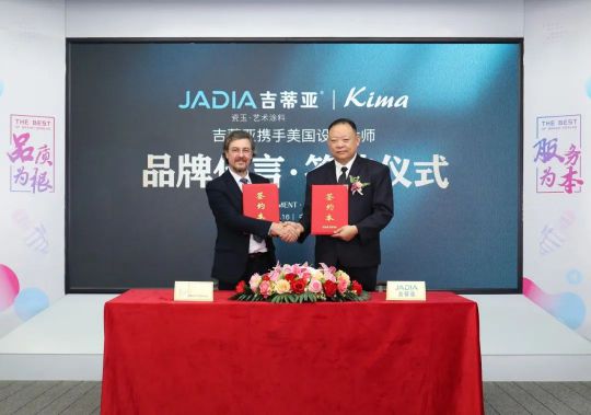 JADIA董事長武杰代表品牌與美國設計大師Kima先生正式簽約,正式宣布Kima成為吉蒂亞瓷玉·高端藝術涂料品牌代言人。