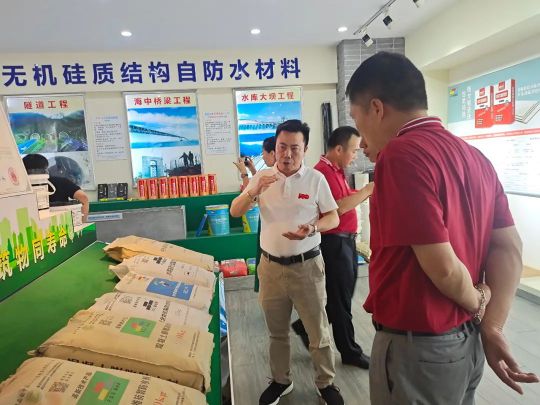 董事長劉少東向大家介紹了公司專利產(chǎn)品——FDS無機(jī)硅質(zhì)結(jié)構(gòu)自防水產(chǎn)品、FDS氟碳環(huán)氧防水防腐涂料及公司新一代防水產(chǎn)品的性能和基本用途。帶領(lǐng)大家參觀了產(chǎn)品樣板間,直觀了解產(chǎn)品的作用及適用范圍。