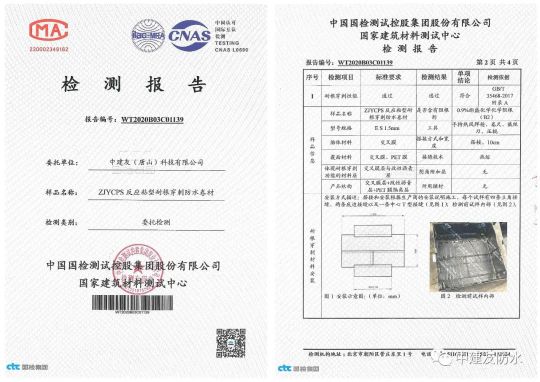 熱烈祝賀:中建友防水公司的ZJYCPS反應(yīng)粘結(jié)型耐根穿刺防水卷材,順利通過中國國檢測試控股集團股份有限公司國家建筑材料測試中心的耐根穿刺檢測。