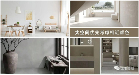 對于客廳、餐廳這種開放性的大空間,優先考慮與地磚顏色相近的顏色,但是不能完全沒有縫隙,那樣會產生視覺疲勞,選擇比瓷磚的顏色深一點的或者淺一些的顏色,使得地磚整體更加和諧、簡單,有層次感,不會感覺太大差異。