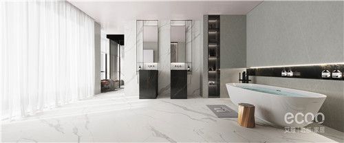墻地銜接,一氣呵成,延伸了衛浴的視野空間
