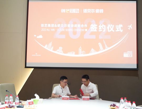 創藝裝飾集團CEO肖劉根和諾貝爾集團助理總裁劉兵毅作為雙方代表,在戰略合作簽約書上鄭重簽署,自此,諾貝爾和創藝裝飾集團的合作正式拉開序幕。