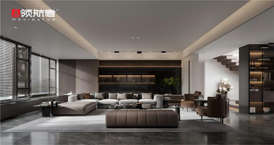真正的整家定制美學,更注重人文關懷與個性化表達。領航者家居摒棄“千屋一面”的標準化設計,為每個家庭提供專屬定制服務。設計師會深入溝通用戶的生活習慣、審美偏好與家庭結構,為有孩童的家庭設計圓角柜體與可調節收納格,為職場人士打造隱藏式辦公區,讓門墻柜不僅契合空間尺度,更精準匹配居者的生活軌跡。