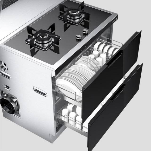 櫥柜和燃?xì)庠畹囊惑w化設(shè)計基本上充分利用了燃?xì)庠畹撞康目臻g。過去,由于小櫥柜/消毒器的尺寸不統(tǒng)一,不能根據(jù)櫥柜下面的隔間定制,櫥柜/消毒器的放置成為一個頭疼的問題,只能放置在廚房的桌子或過道上,占據(jù)了現(xiàn)有的空間,供電也是一個問題。然而,大型櫥柜/消毒柜也有同樣的尺寸問題。要么廚房下面沒有空間,要么浪費(fèi)了額外的空間。