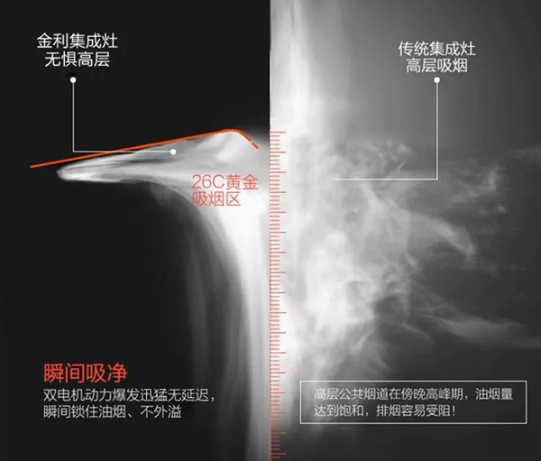 著名品牌金利集成灶的吸煙方式為側(cè)吸低排,其高度正好在金控區(qū)內(nèi)。這種煙氣吸收方式和高度設(shè)計(jì)不僅能有效吸收煙氣,還能防止煙氣上升和擴(kuò)散。即使辣椒在金利集成爐上油炸,也不容易窒息。當(dāng)油煙問(wèn)題解決了,廚房里的悶熱問(wèn)題也就解決了。